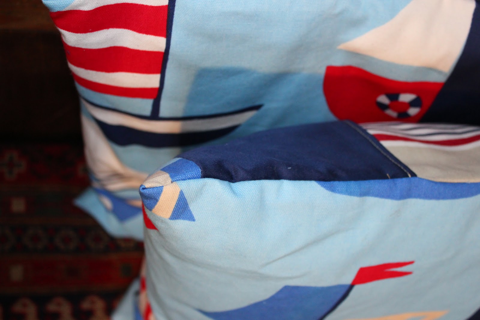 I made these cushions for my parents who live on a river and love to sail. They are for their boat or garden. I