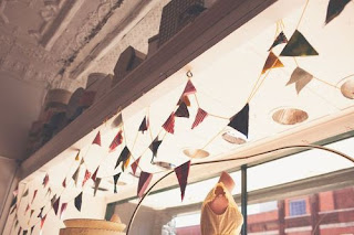 The window serves as a window into my world, a little like those old paper concertina stages. It is framed by papercrafts, bunting and wares.